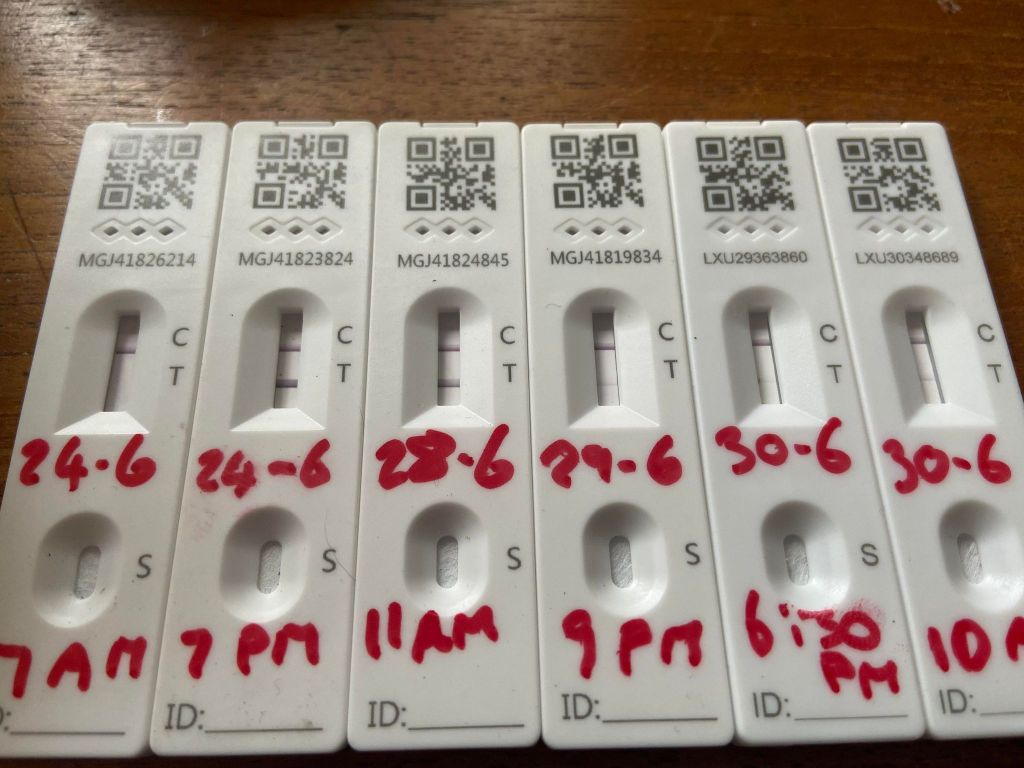 Last night I had the shivers and thought I was getting a cold. I did a lateral flow test this morning (Friday) and it was negative, so I went to work. Feeing tired all day, when I finally got home from work, I did another test. Positive…